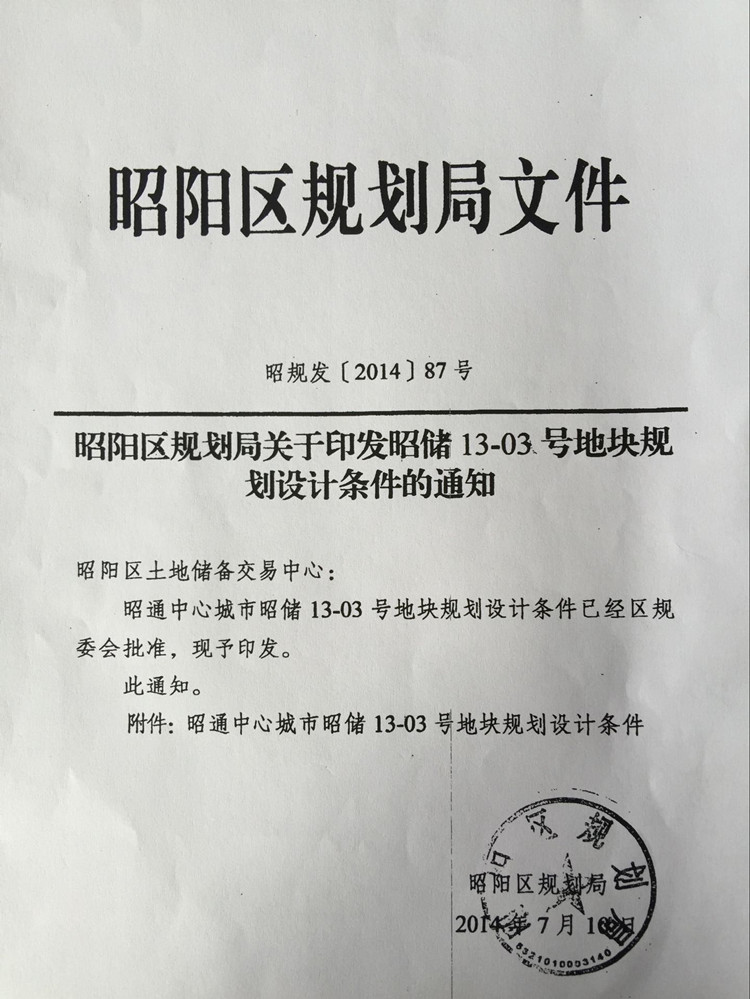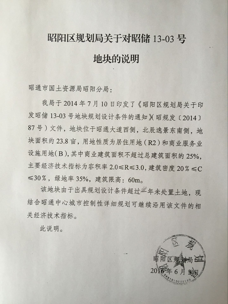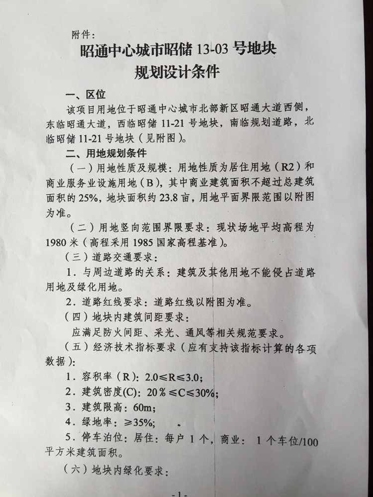 昭通中心城市13-03號(hào)國(guó)有建設(shè)用地使用權(quán)規(guī)劃條件