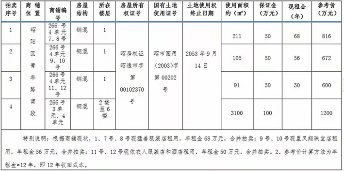 昭陽(yáng)區(qū)青年路南段商鋪拍賣(mài)公告