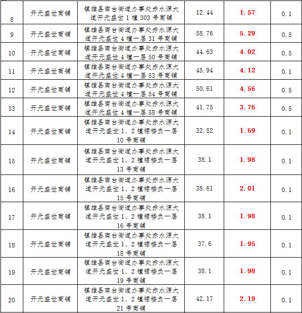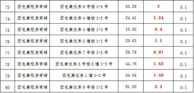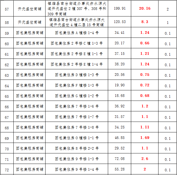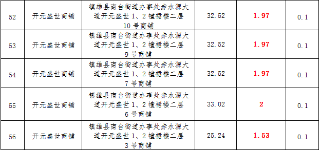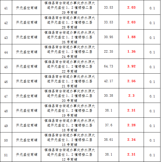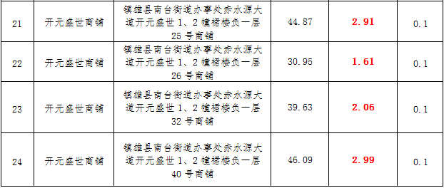 (三)拍租鎮(zhèn)雄縣城市運(yùn)營(yíng)管理有限公司國(guó)有門面3年期使用權(quán),詳見(jiàn)下表: